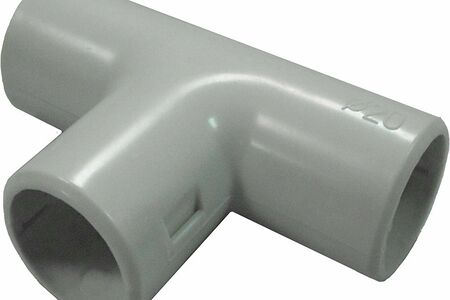 Угол Т-образный типа ТРУБА-ТРУБА для гофрированной или жесткой гладкой трубы выполнен из АБС пластика. Предназначен для соединения 3-х гофрированных или жестких труб одного диаметра под углом 90 градусов относительно друг друга. Класс защиты IP40. Угол, как правило, используется для соединения жестких гладких труб, образуя Т-образные ответвления под 90 градусов в жестком исполнении.
