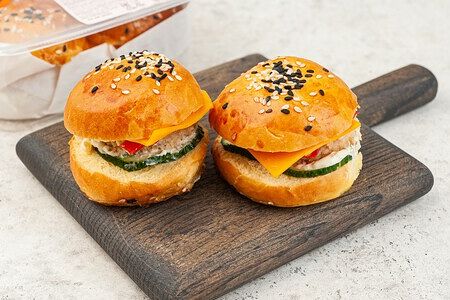 Бургеры с куриной котлетой и сыром Чеддер доставка
