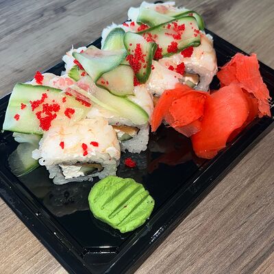 Рис, нори, лосось, креветка, снежный краб, сливочник сыр, икра масаго
