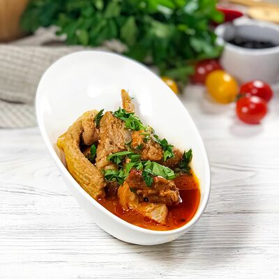 Томатный соус с чесноком, зеленью, острым перцем и кавказскими специями