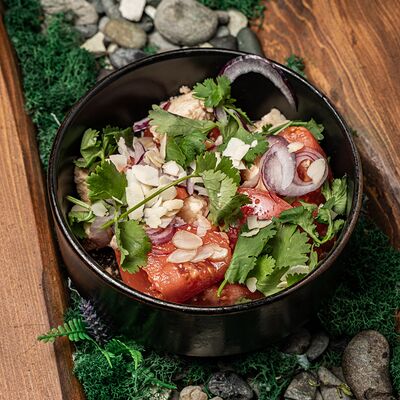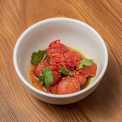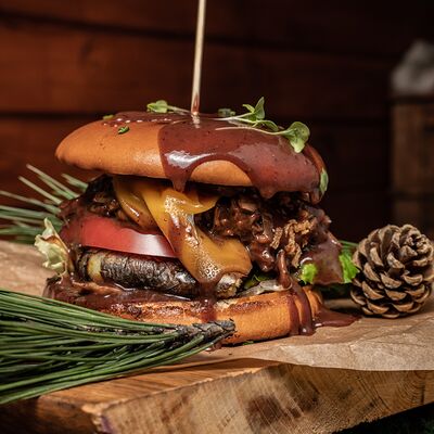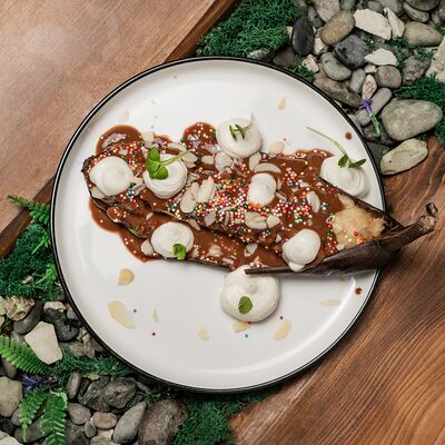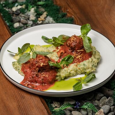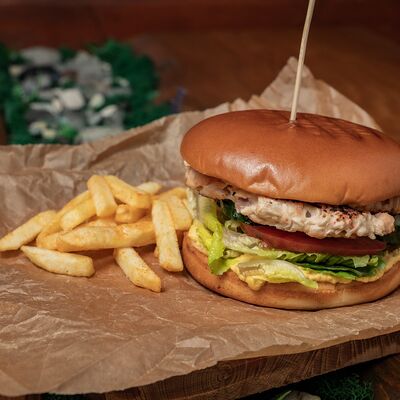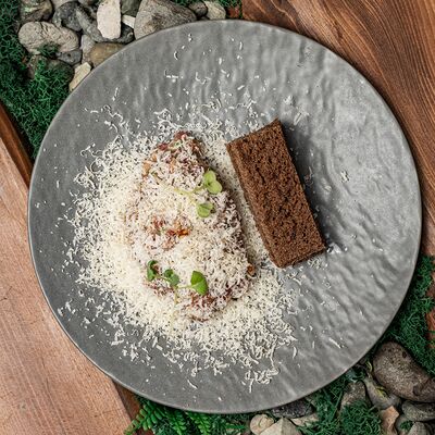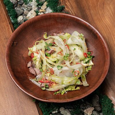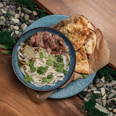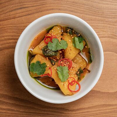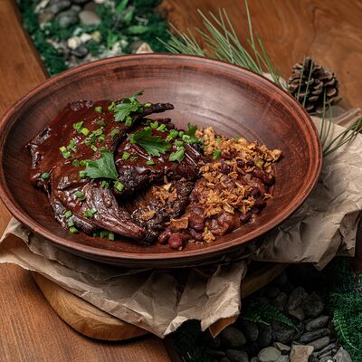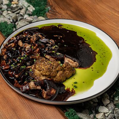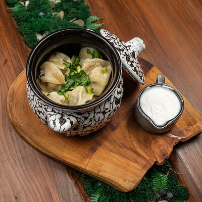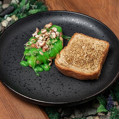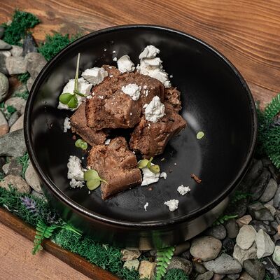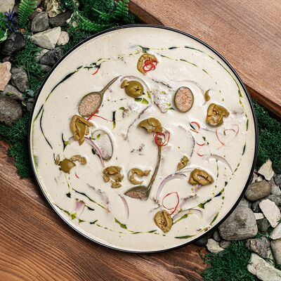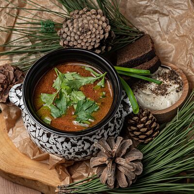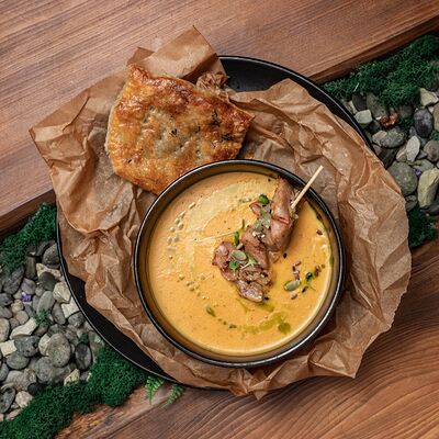 Крем-суп из корнеплодов, с домашним цыпленком (подается с грибной слойкой)