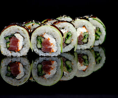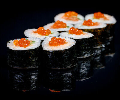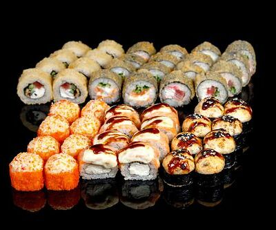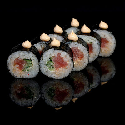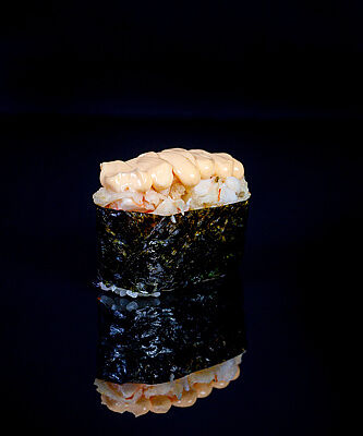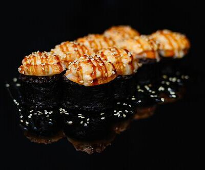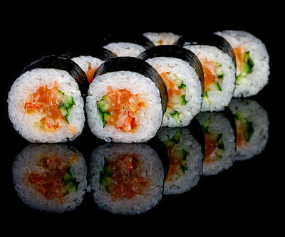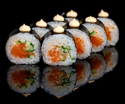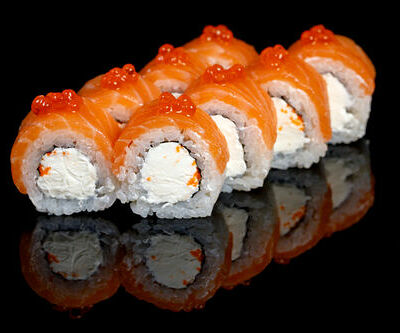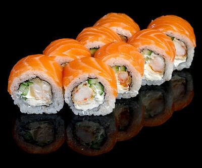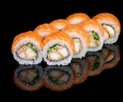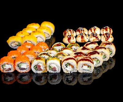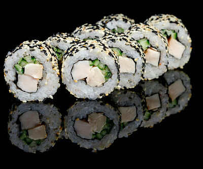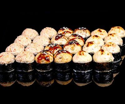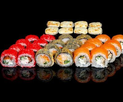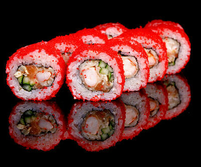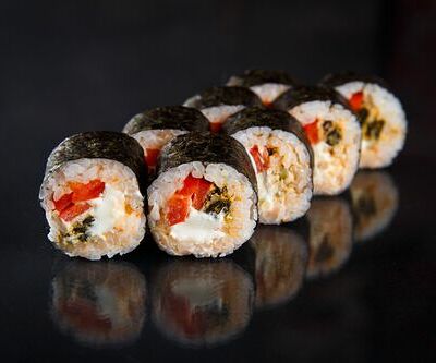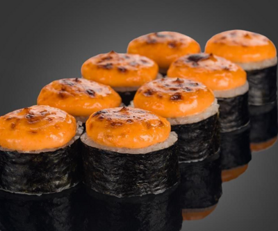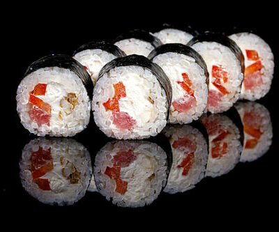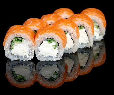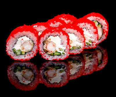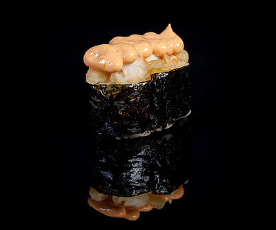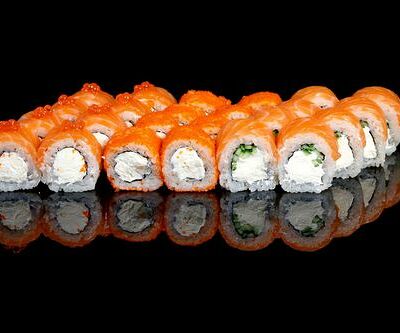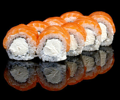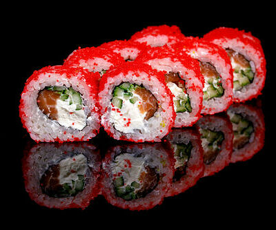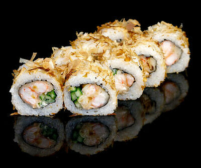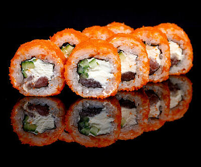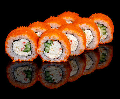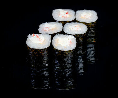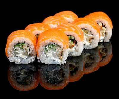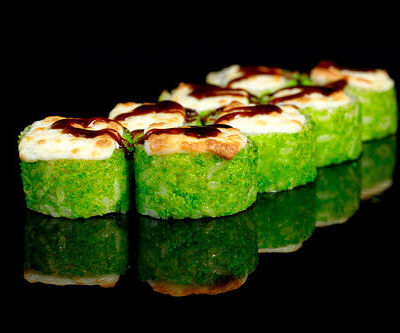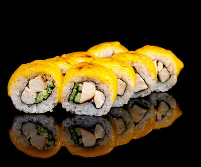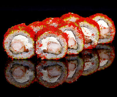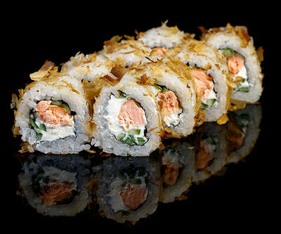 300 гр Рис, нори, угорь, креветка в кляре, огурец, сливочный сыр, кляр, сухари, соус унаги