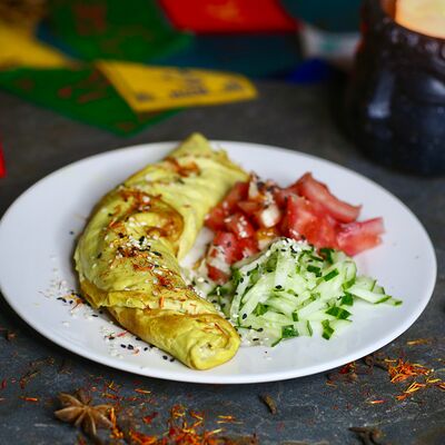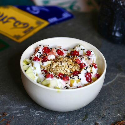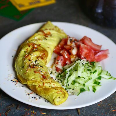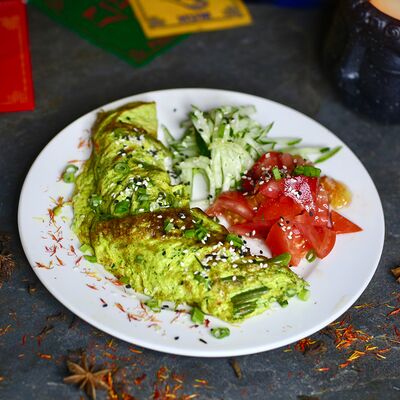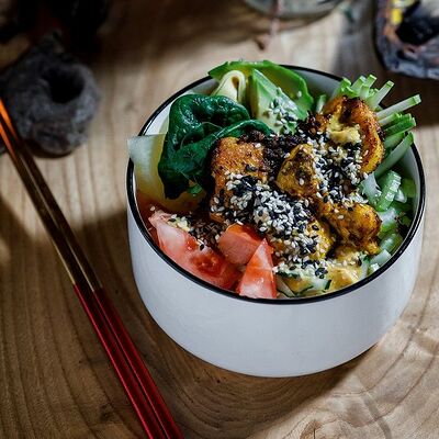 Рис, цукини, помидор, курица, шпинат, ананас, сельдерей, огурец, тибетский соус, кунжут, масло оливковое