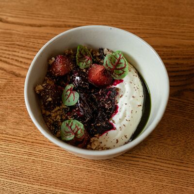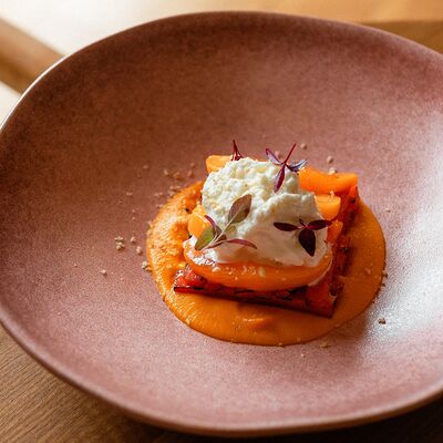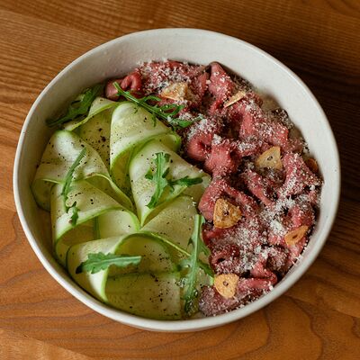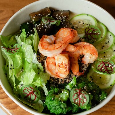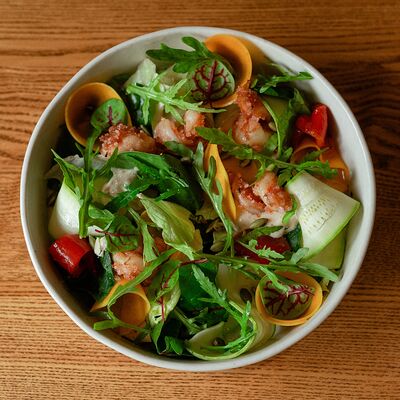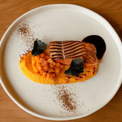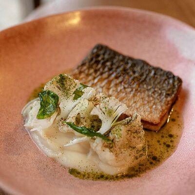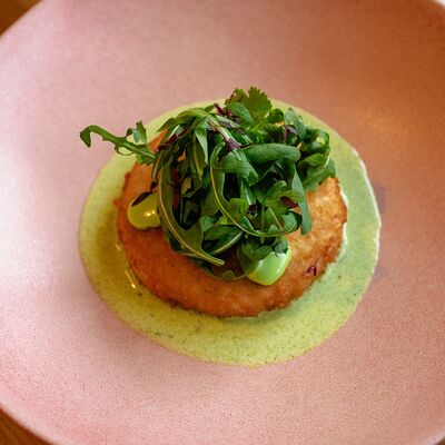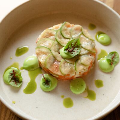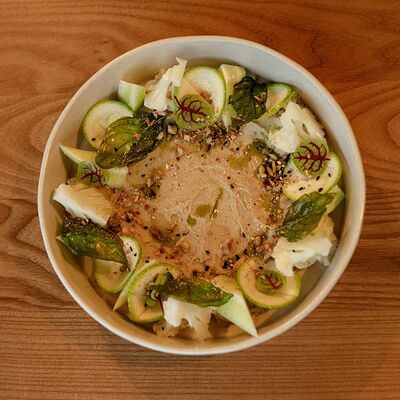 Семга, цукини, огурец, лавандовая заправка, фейхоа, укропный айоли