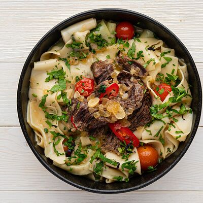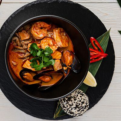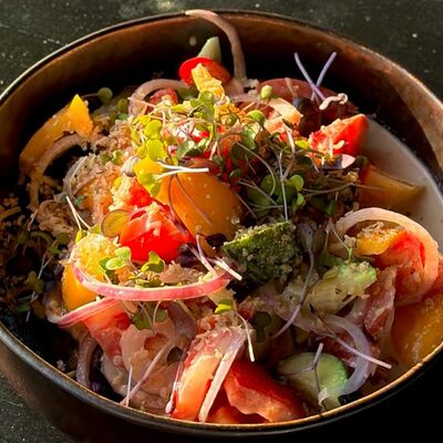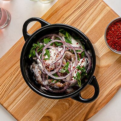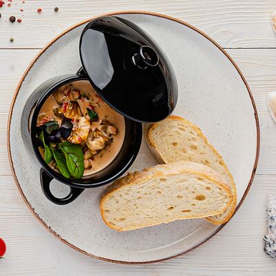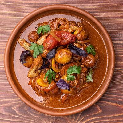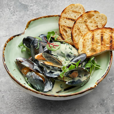 Рагу из черноморских рапанов в сливочном соусе, с розовыми томатами
