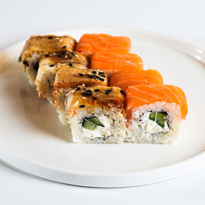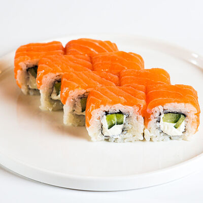 Калифорния с лососем, калифорния, филадельфия, огурец мини