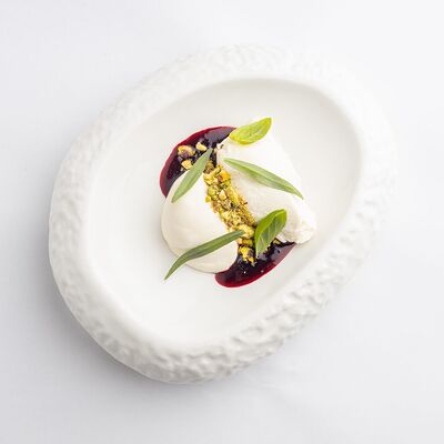 Розовые томаты, сыр моцарелла, соус песто, оливковое масло, орех кедровый, базилик, тархун