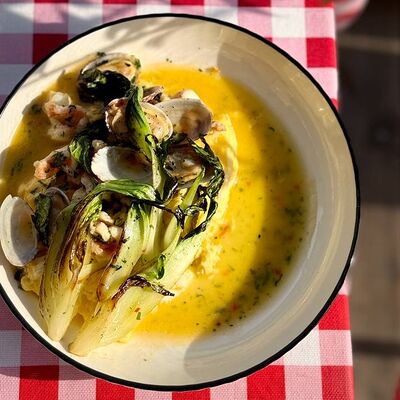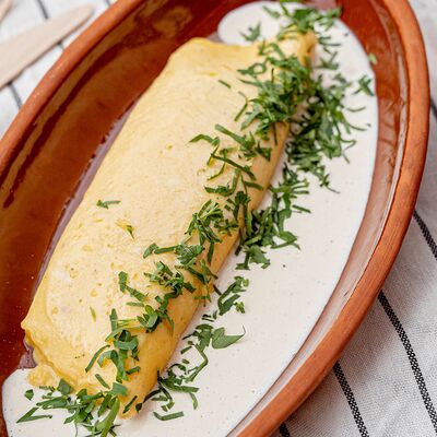 Слабосоленый лосось, крем-чиз с каперсами, листья салата, маринованный огурец, зеленый лук