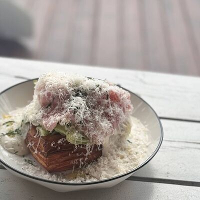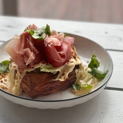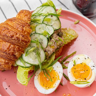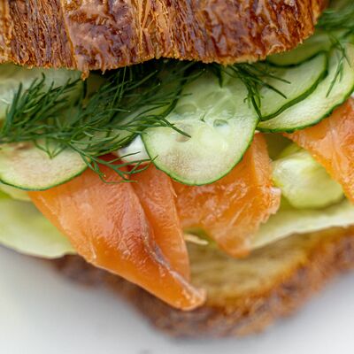 Холодный сэндвич на круассане со слабосоленым лососем доставка