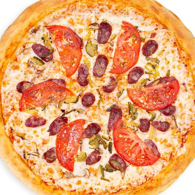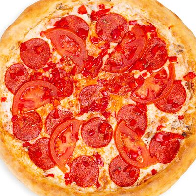Сыр моцарелла, помидоры, соус красный. Размеры на выбор