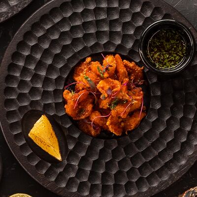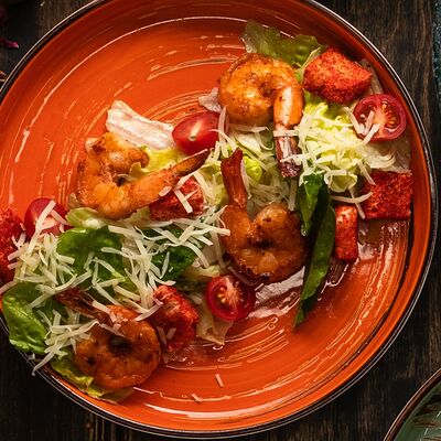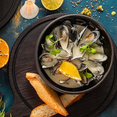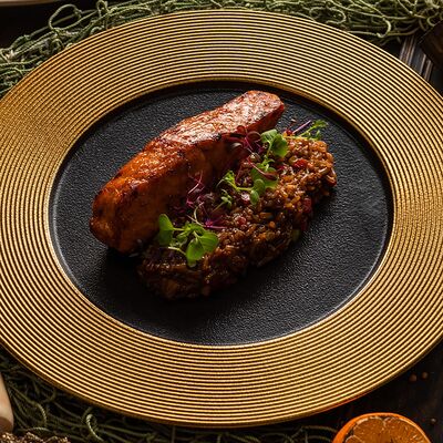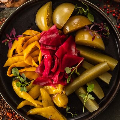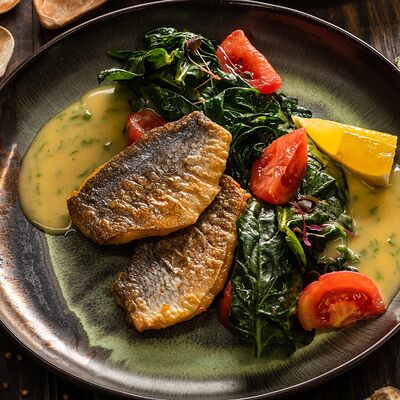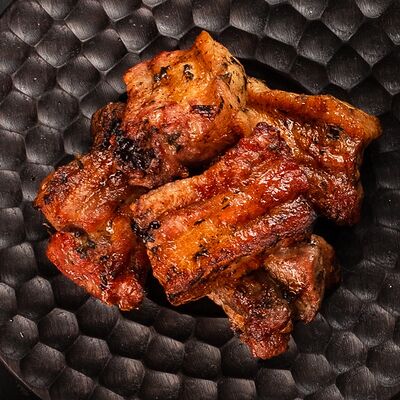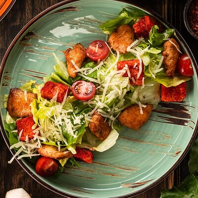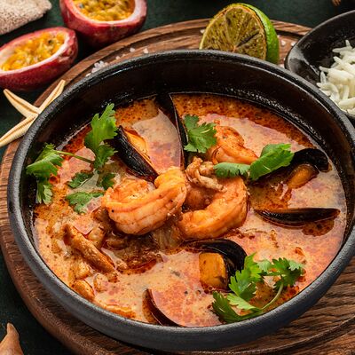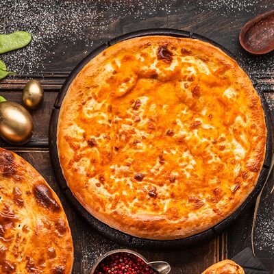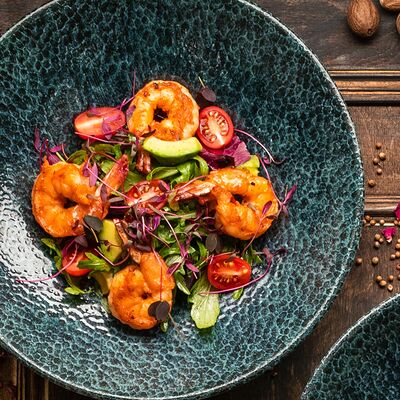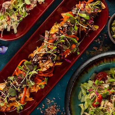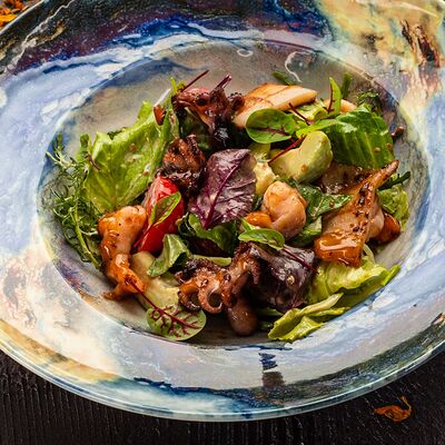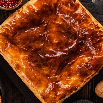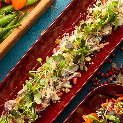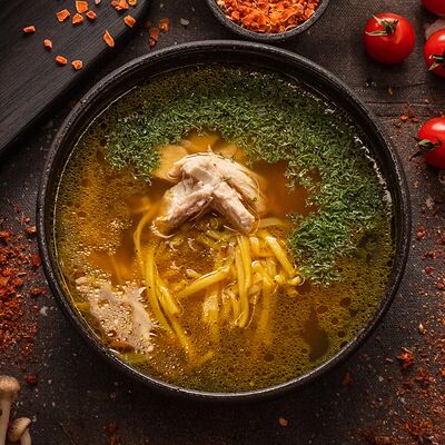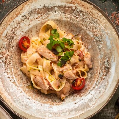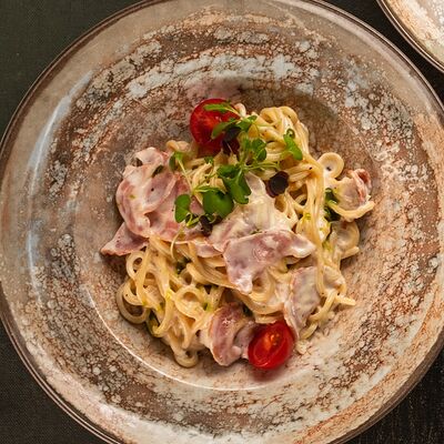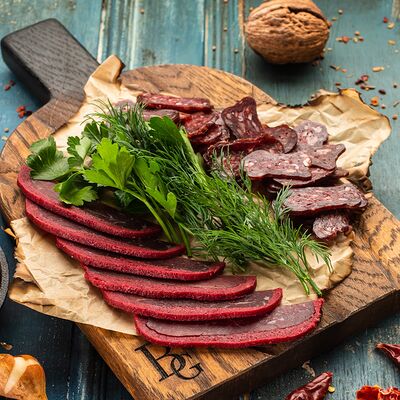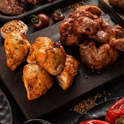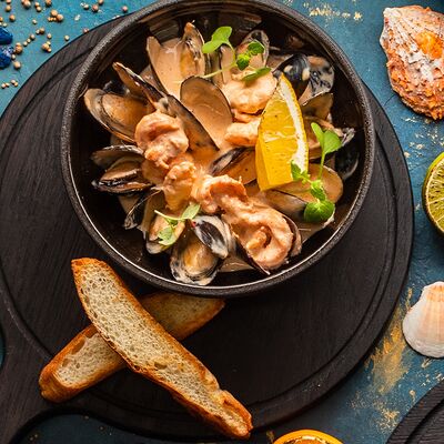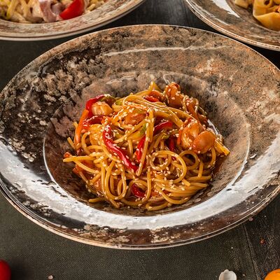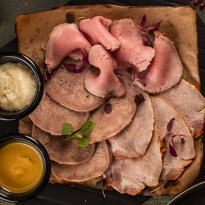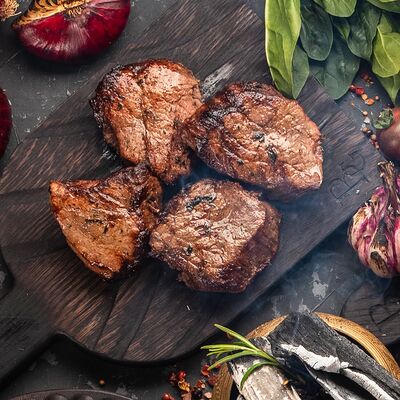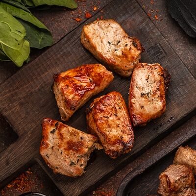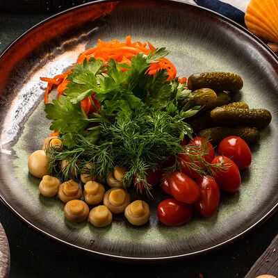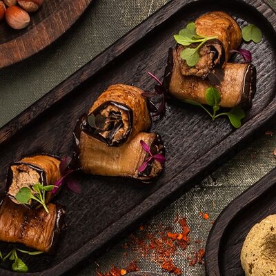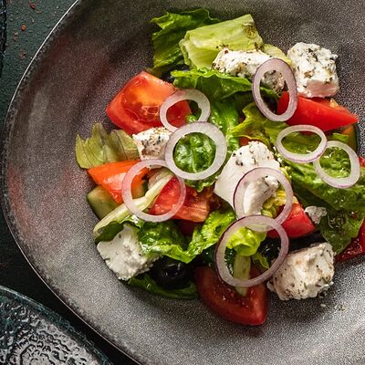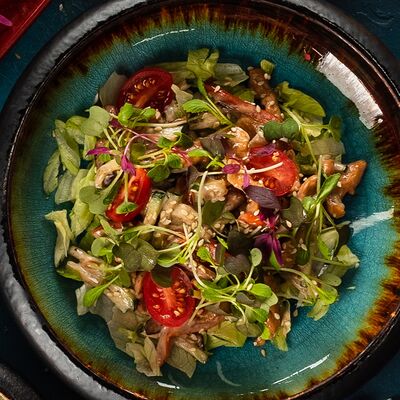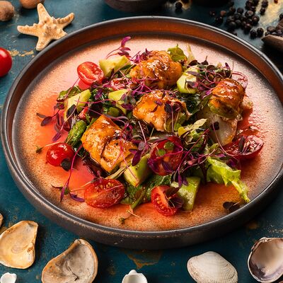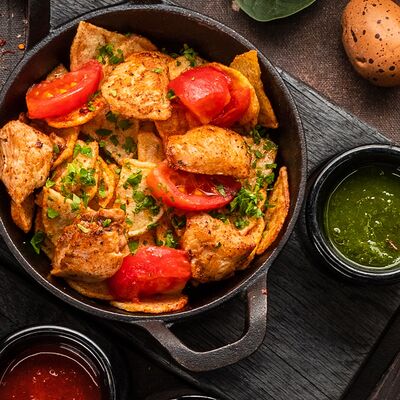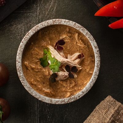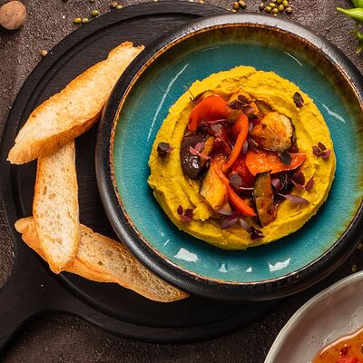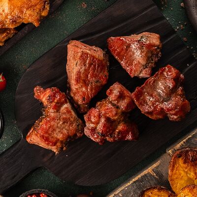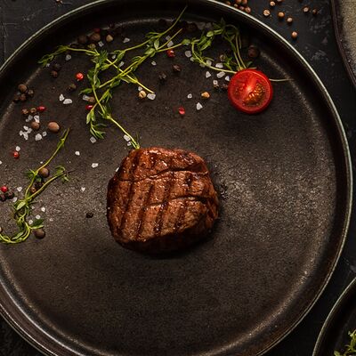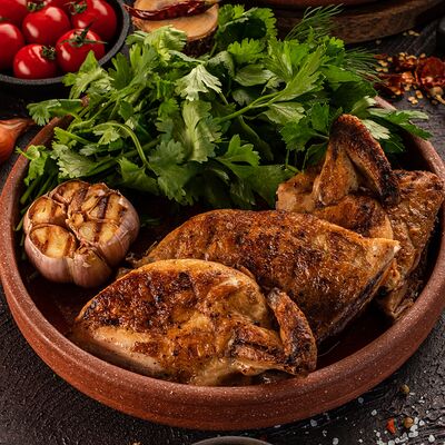 Мякоть говядины, томленная в томатах с болгарским перцем и специями, зелень