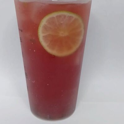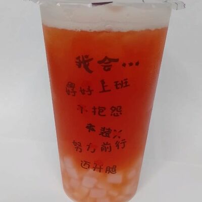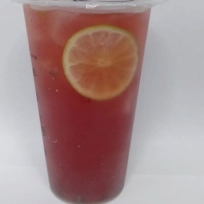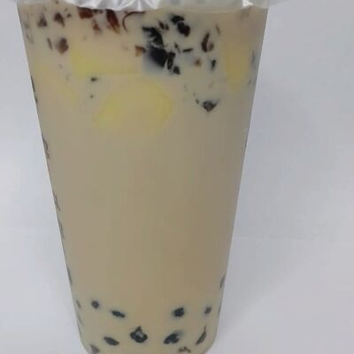 Молочный чай, тапиока, сироп баблгам, клубничный сироп