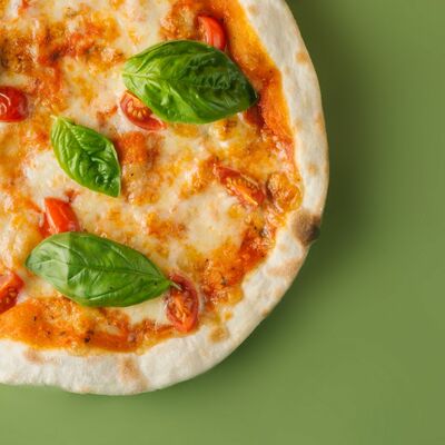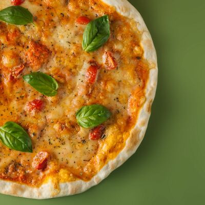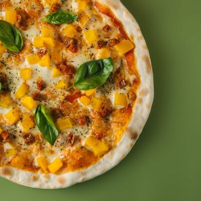 Томатный соус, моцарелла, козий сыр, запеченная тыква, вяленые томаты, свежий базилик (30 см)