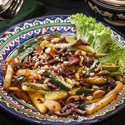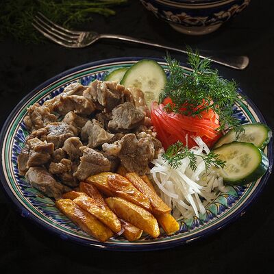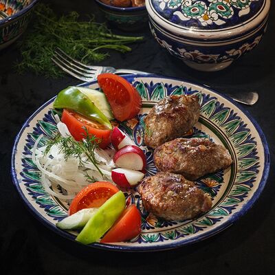 Колбаса 2 вида, говядины, огурцы соленые, лук, специи