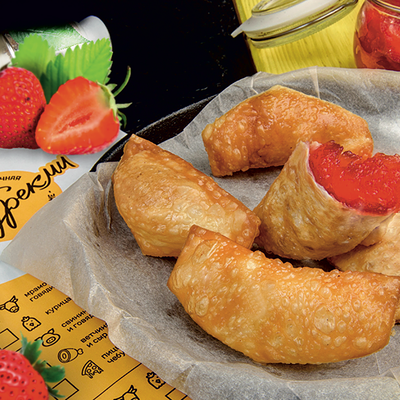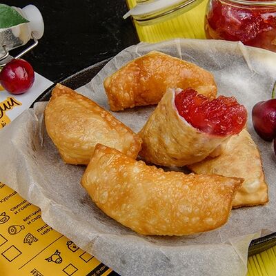 Вкусные и сладкие десертные мини-чебуречки с клубничным джемом в хрустящем тесте (7 шт.)