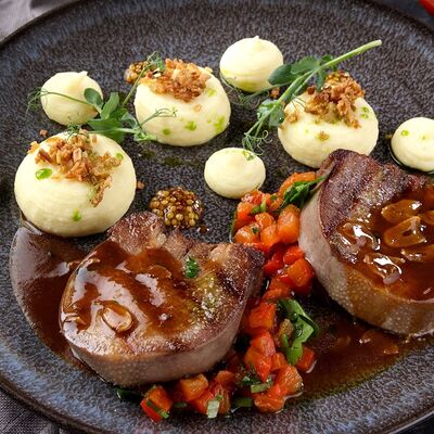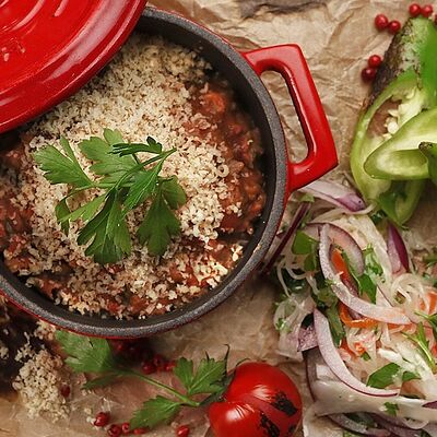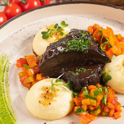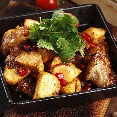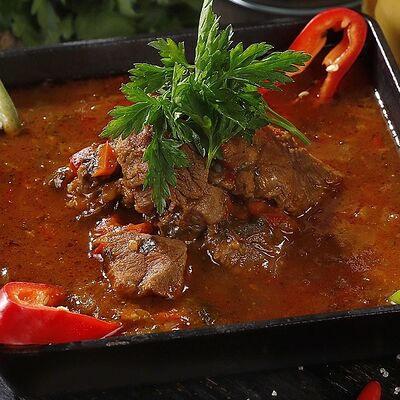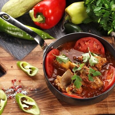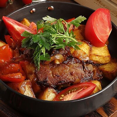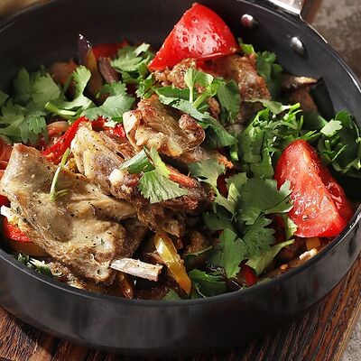 Кусочки молодого барашка, тушенные с овощами и пикантными специями