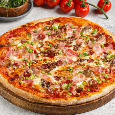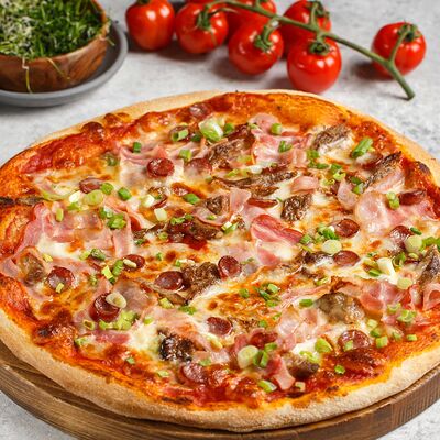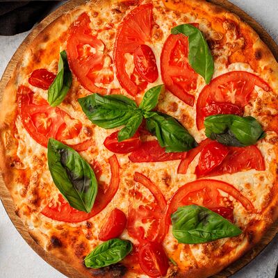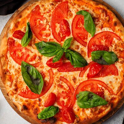 Помидоры, помидоры черри, базилик свежий, соус красный пилати, сыр моцарелла (30 см)