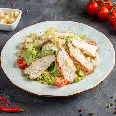 Курица, сыр сливочный, салат, соус сырный