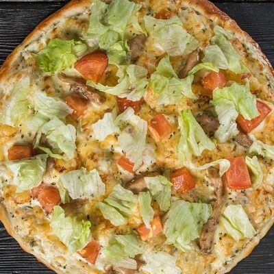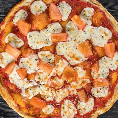 Тонкое итальянское тесто, соус из томатов с травами, сыр моцарелла, помидоры, прованские травы (30 см)