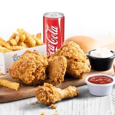 Крылышки (8 шт.), картошка фри, чесночный соус, кетчуп, добрый кола