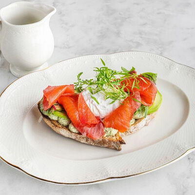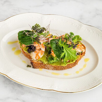 Морская форель, авокадо, красная икра