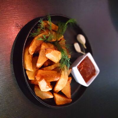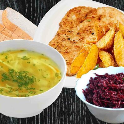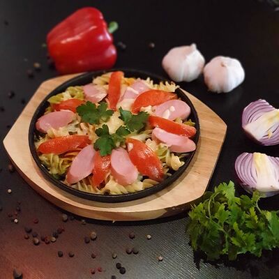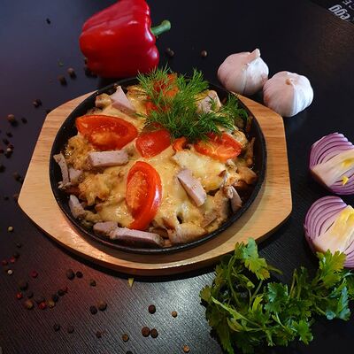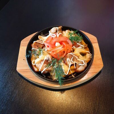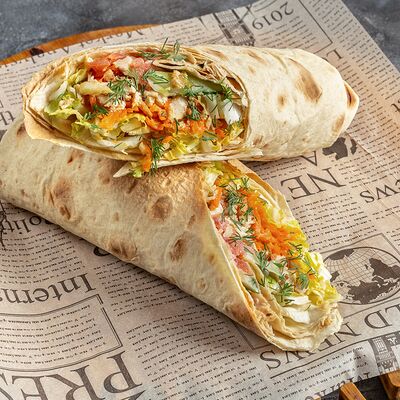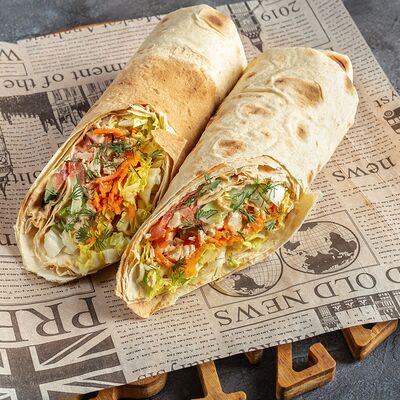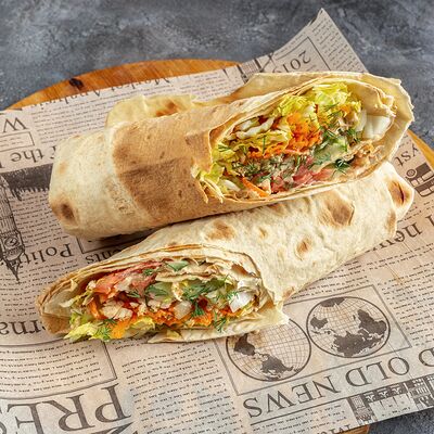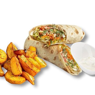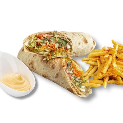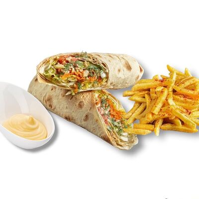 Шаурма куриная, одна порция картофеля фри, соус сырный
