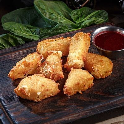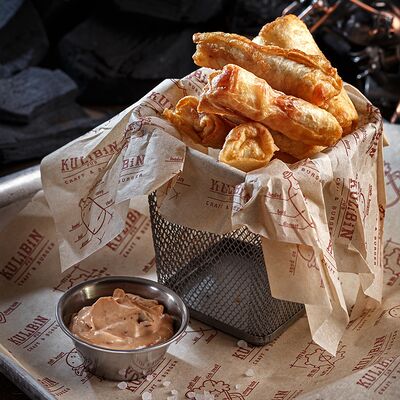 Луковые кольца в панировке, обжариваем во фритюре, подаем с острым соусом 2 перца