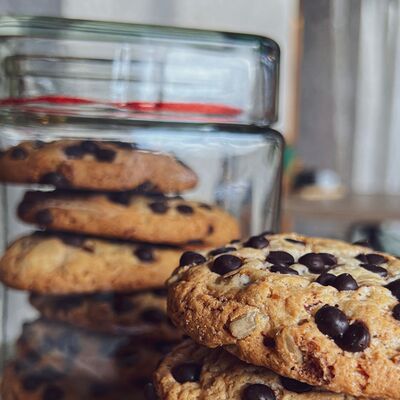 Злаковое печенье с шоколадными дропсами, изюмом и семенами подсолнечника
