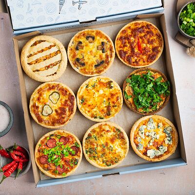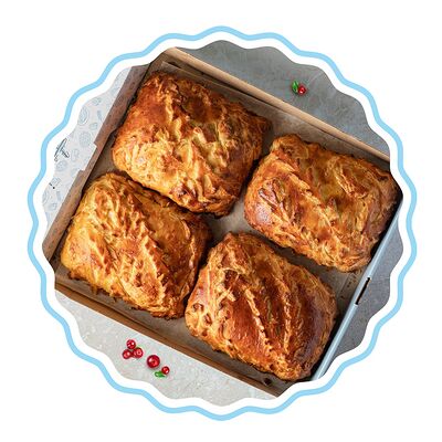 Набор из четырех изумительных мини-пирогов на слоенно-дрожжевом тесте. Аппетитные сочные начинки на любой вкус. 3 сытных и один сладкий. В входят: Новгородский курник с курочкой, рубленным яйцом и рисом, Московская кулебяка с фаршем из отборного мяса, Кубанский чинёнок с брокколи, томатами и болгарским перцем, Рязанский творожник с творогом и вишней