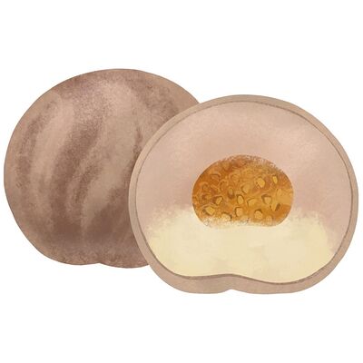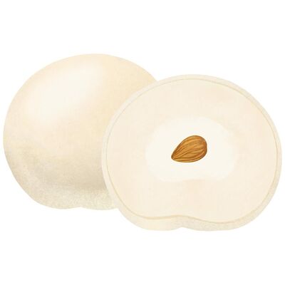 Нежнейший крем-чиз из маскарпоне и кокосовой пасты, в центре цельный миндаль утоплен в нежной кокосовой мякоти