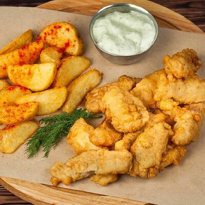 В пивном кляре, обжаренные во фритюре, подаются с соусом тартар