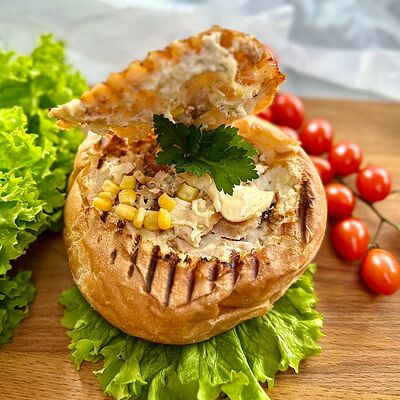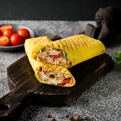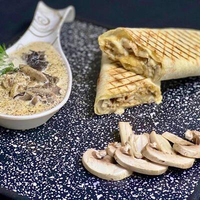 Лаваш, мясо куриное, сыр Гауда, жульен грибной