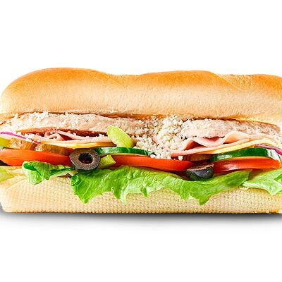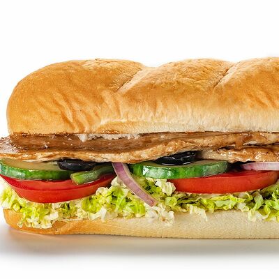 Ломтики индейки и ветчины в пшеничной лепешке с овощами и соусом на выбор