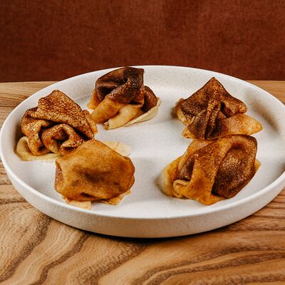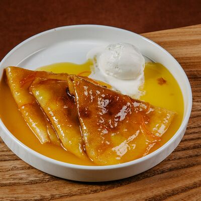 Нежная воздушная бриошь с мороженым и вишневым конфи