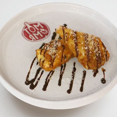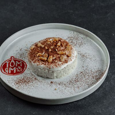 Сладкий рис с творожным сыром, сгущённым молоком, жареным арахисом и шоколадом