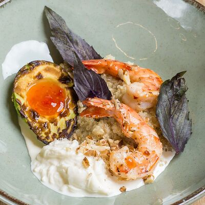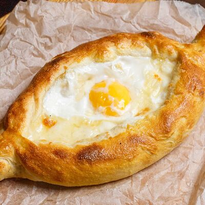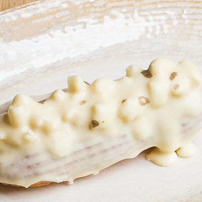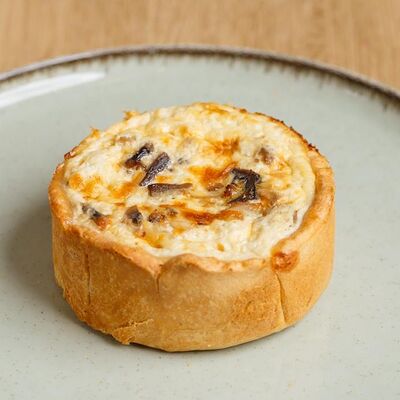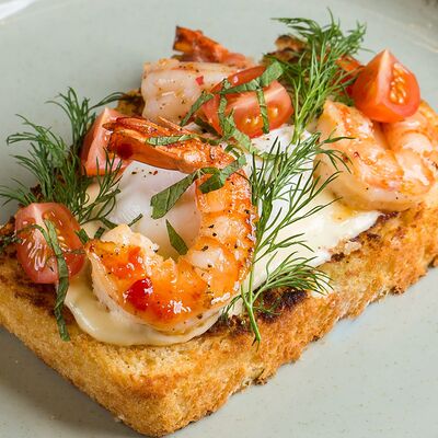 Бриошь с крабкейком и сырным соусом доставка