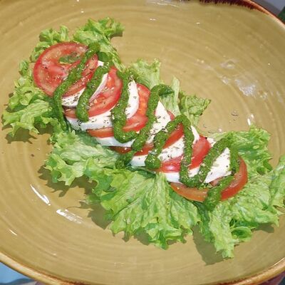 Свежие овощи в сопровождении сыра брынза, подаётся с оригинальным соусом Греческий