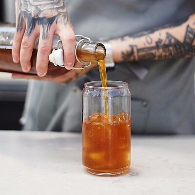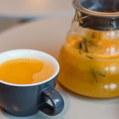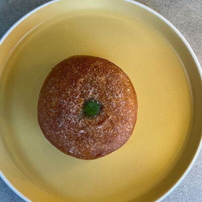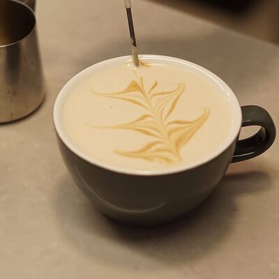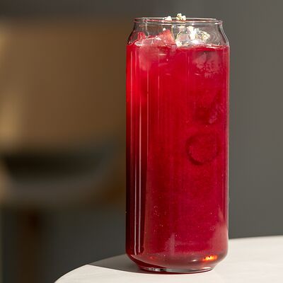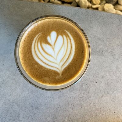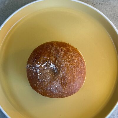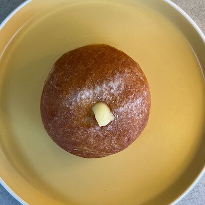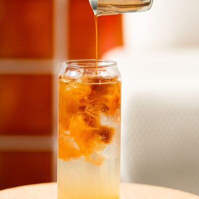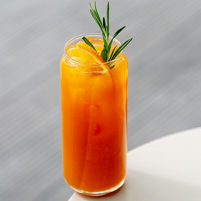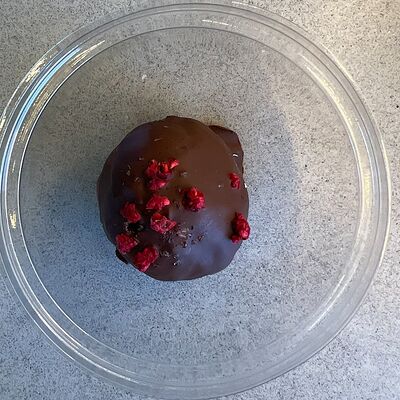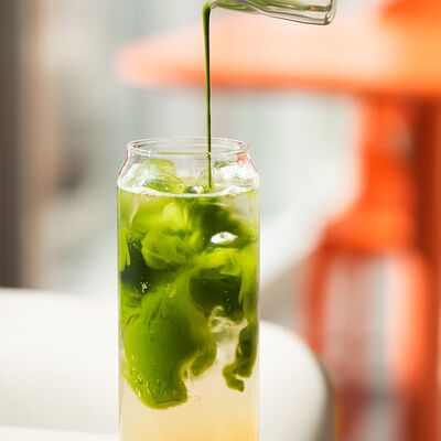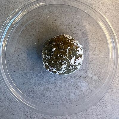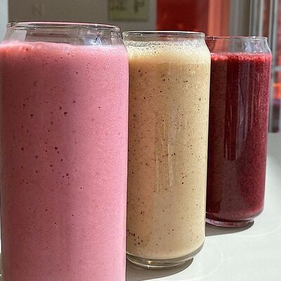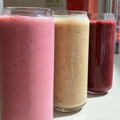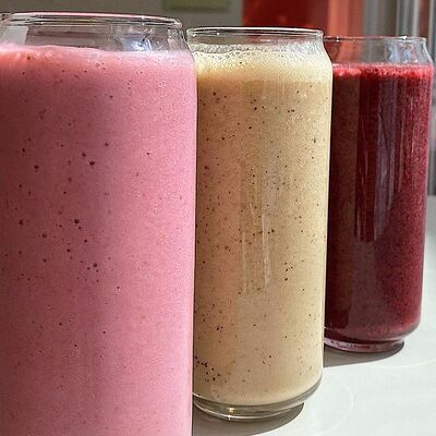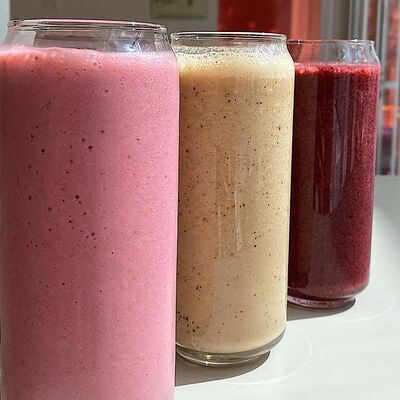 Банан, финики, кокосовое молоко, пюре манго-маракуйя. Собственного приготовления