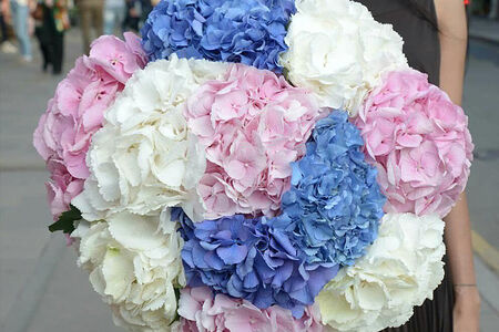 Гортензии микс - 11 шт., атласная лента. Удивительные, воздушные и ажурные соцветия гортензии всегда волновали людей своей свежестью и изысканным видом. Дарить гортензию женщине всегда приятно - любая дама будет просто в восторге от столь восхитительного зрелища