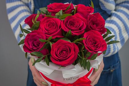 Букет 9 красных роз с фисташкой в шляпной коробке доставка