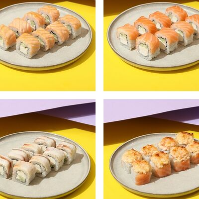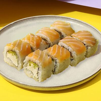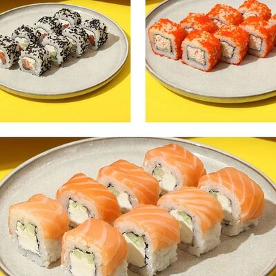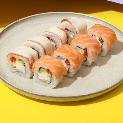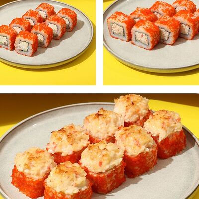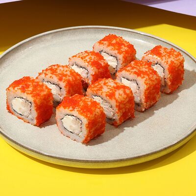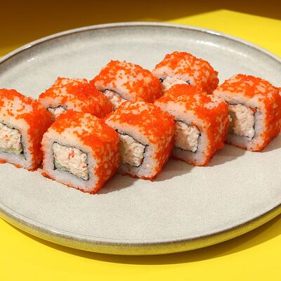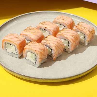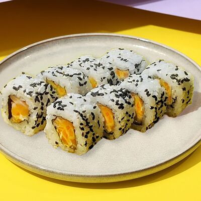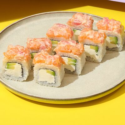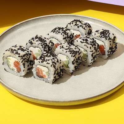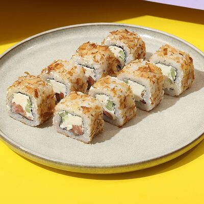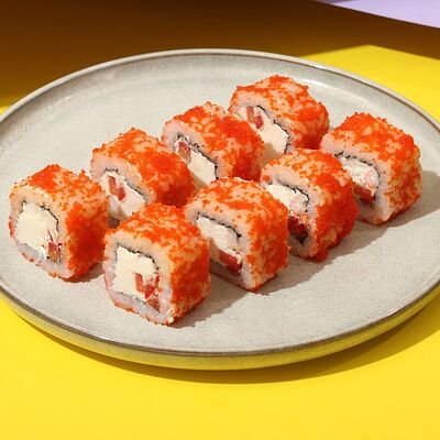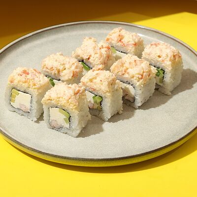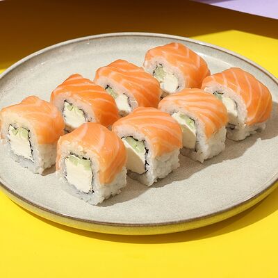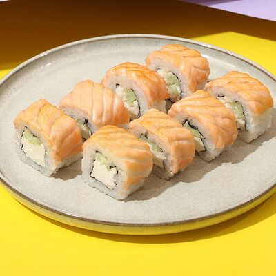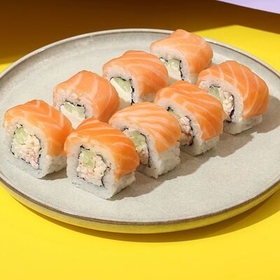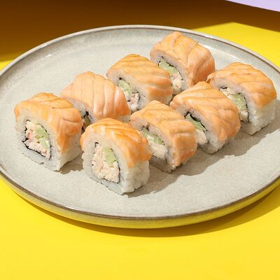 Рис, нори, лосось, творожный сыр, огурец, имитация краба