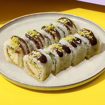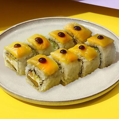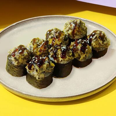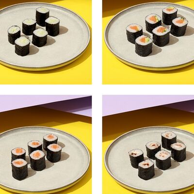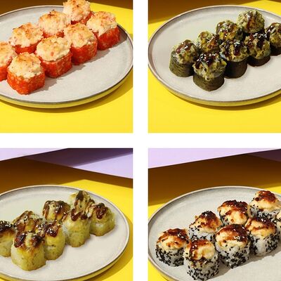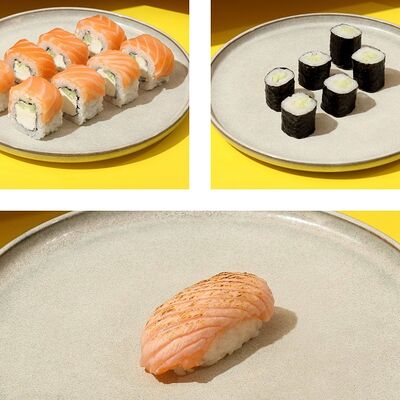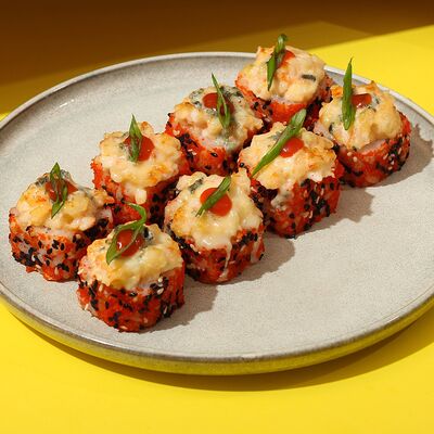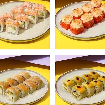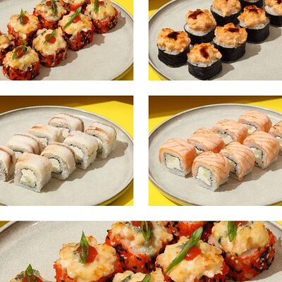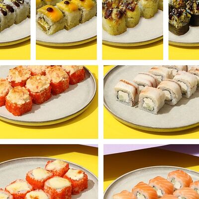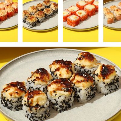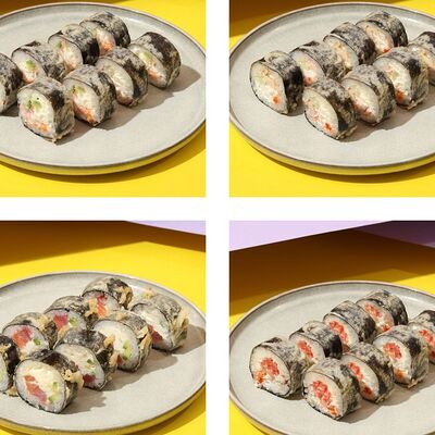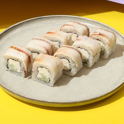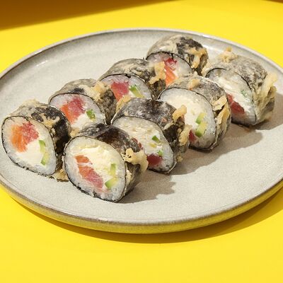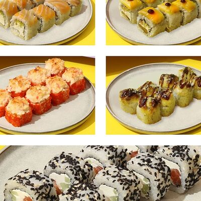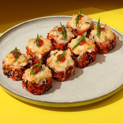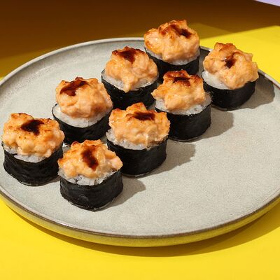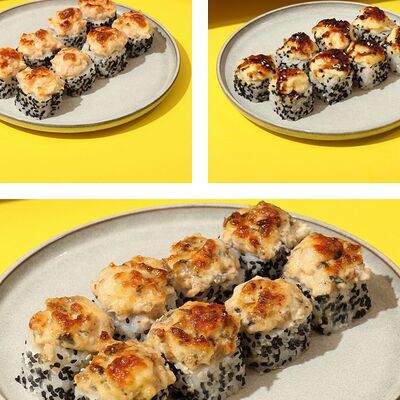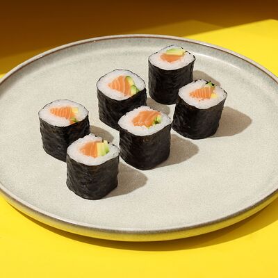 Рис, нори, лосось, творожный сыр, огурец, имитация краба