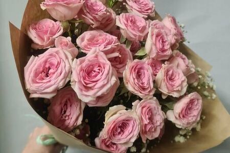 Роза кустовая 7 шт 50 см, Гипсофила 1 шт