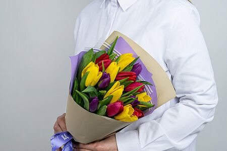 Тюльпан (15 шт.), пленка матовая (2 шт.), лента атласная (1 шт.)