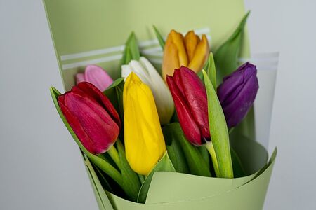 Букет комплимент 7 тюльпанов в стильной упаковке доставка