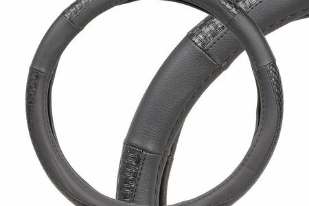 Оплетка на руль M 38см экокожа с тиснением черный (Airline) доставка