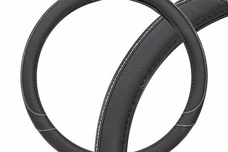 Оплетка на руль M 38см экокожа с перфорацией черный (Airline) доставка