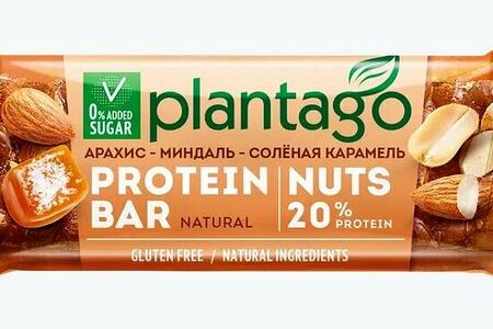 Батончик протеиновы Plantago Protein Bar Natural 40 г арахис - миндаль - соленая карамель доставка