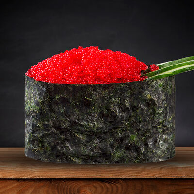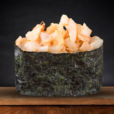Филадельфия кани тобико (сливочный сыр, снежный краб, огурец, японский омлет, масаго), ролл Калифорния (снежный краб в Яки соусе, огурец, кунжут), Острый ролл с крабом (снежный краб в Спайси соусе, кунжут)