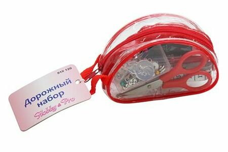 Дорожный набор Hobby&Pro включает все необходимое для мелкого ремонта одежды. Возьмите его с собой в отпуск, на дачу или в командировку. Комплектующие упакованы в прозрачный футляр на молнии, который не займет лишнего места в рюкзаке или дорожной сумке. С помощью этого набора вы сможете: – соединять детали кроя перед наметкой или наложением строчки; – аккуратно вспарывать швы, не повреждая материал; – снимать мерки с помощью сантиметровой ленты; – делать мелкий ремонт и штопку вещей; – пришить пуговицы, крючки или кнопки. Состав набора: сантиметр 1 шт., ножницы 1 шт., вспарыватель 1 шт., наперсток 1 шт., катушки с нитками 6 шт., портновские булавки 17 шт., безопасные булавки 9 шт., крючки и петли 2 комплекта, кнопки 6 комплектов, пуговицы рубашечные 6 шт., нитковдеватель 1 шт., швейная игла 1 шт.